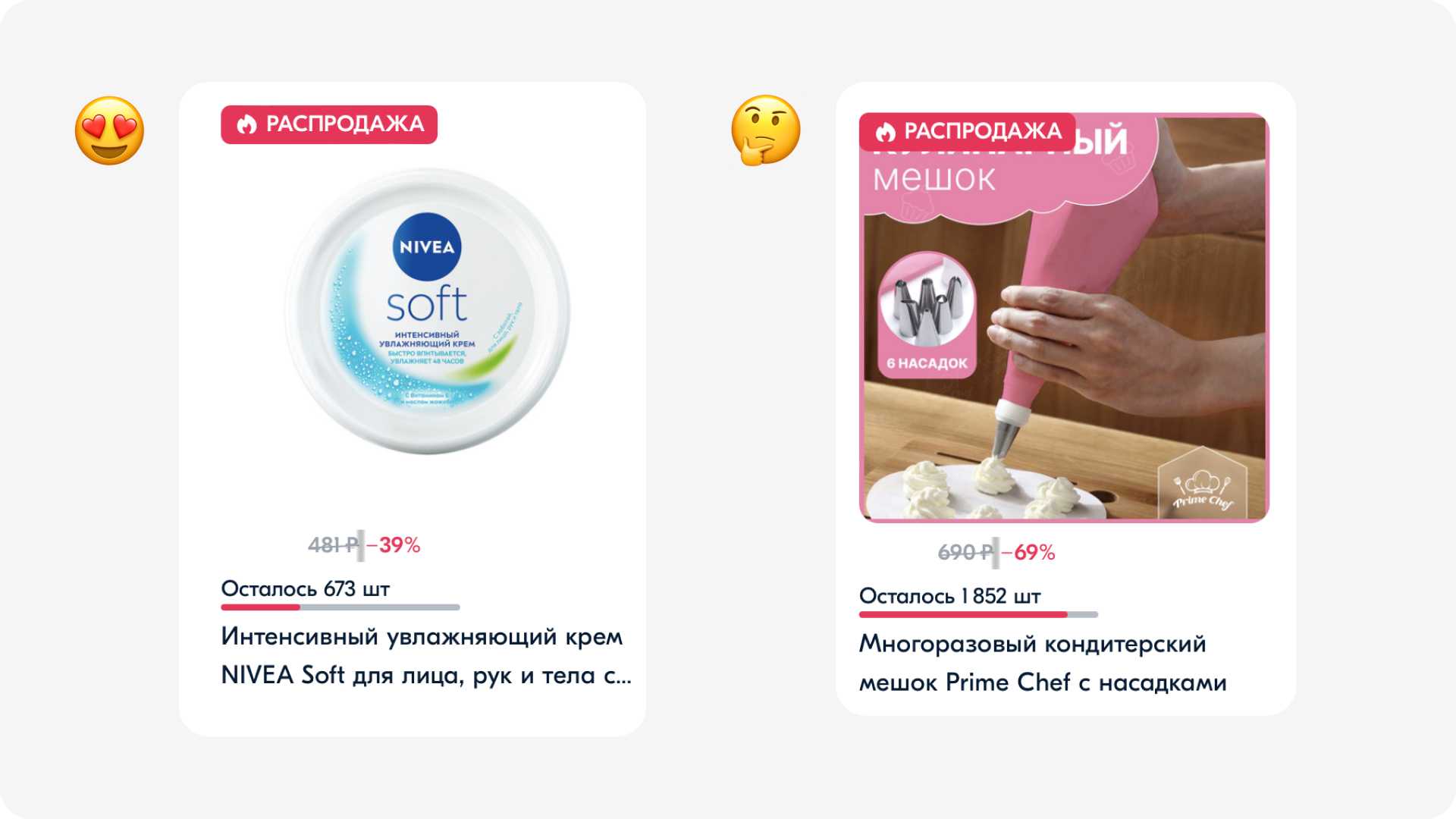 На картинке справа упаковка едва заметная, тогда как левая притягивает к себе больше внимания