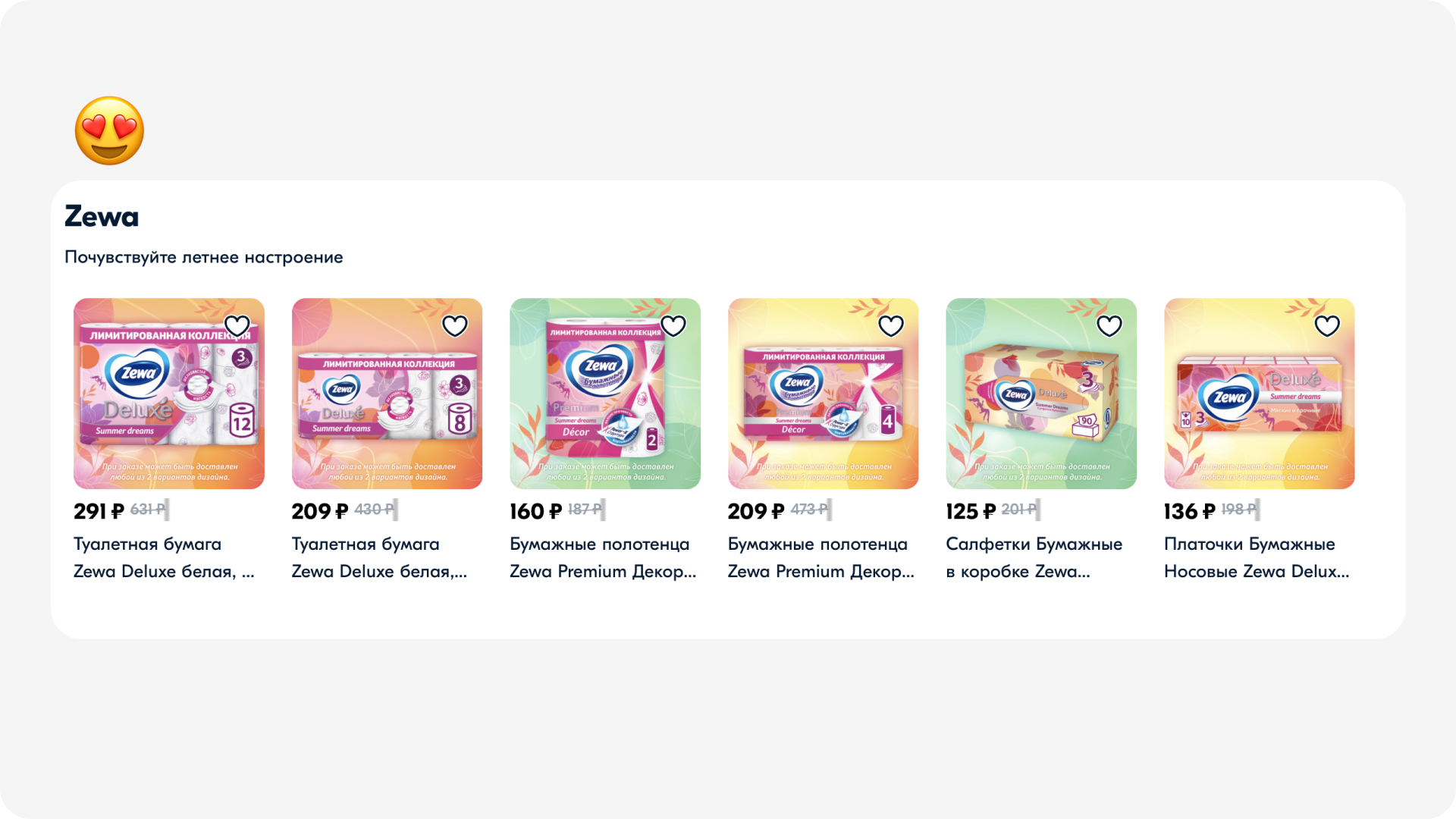 Единый фон выделяет всю линейку товаров, а также создаёт заметное цветовое пятно на экране