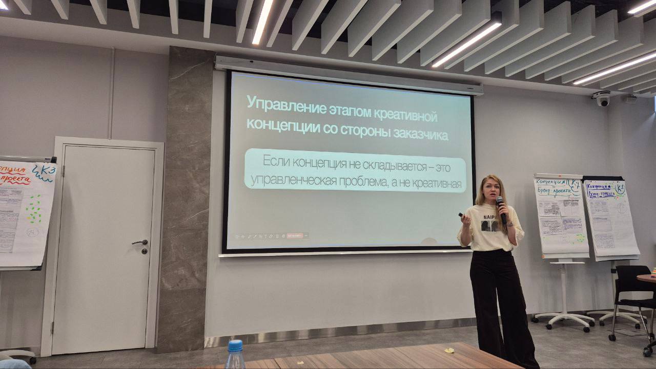 Три дня, 30 слушателей и тема, которая болит у каждого, кто работает с креативом: концепция. Мария рассказала о своём опыте в работе над проектами со стороны подрядчика и объяснила присутствующим, как заказчику не завалить проект на старте и не превращать стратегию в бесконечные правки. На лекции ещё говорили о том, чем концепция отличается от идеи и визуала, почему «нравится / не нравится» — не критерий оценки, кто должен принимать финальное решение и как доверять дизайнеру, не теряя контроль над смыслом.
