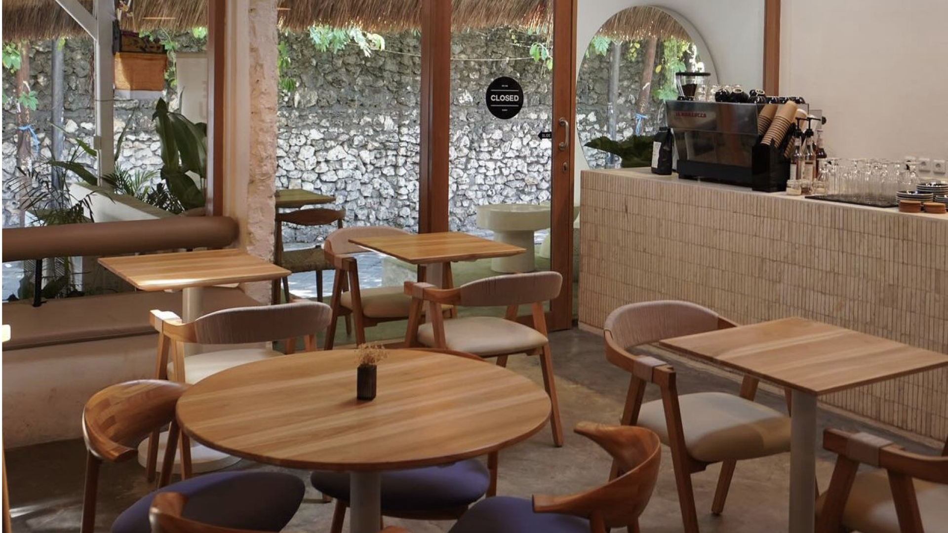 Дизайнеры взяли за основу интерьер кофейни, и случился мэтч. У меня в зале есть фигурная арка и рядом свисает большая круглая лампа. Дизайнеры придали декору значение, который был перед глазами, но я его не замечал. Лампа — это восходящее солнце и вечерняя луна одновременно, а арка — горный рельеф острова. Я очень рад, что все процессы визуала были в руках одной команды и получилось гармонично.