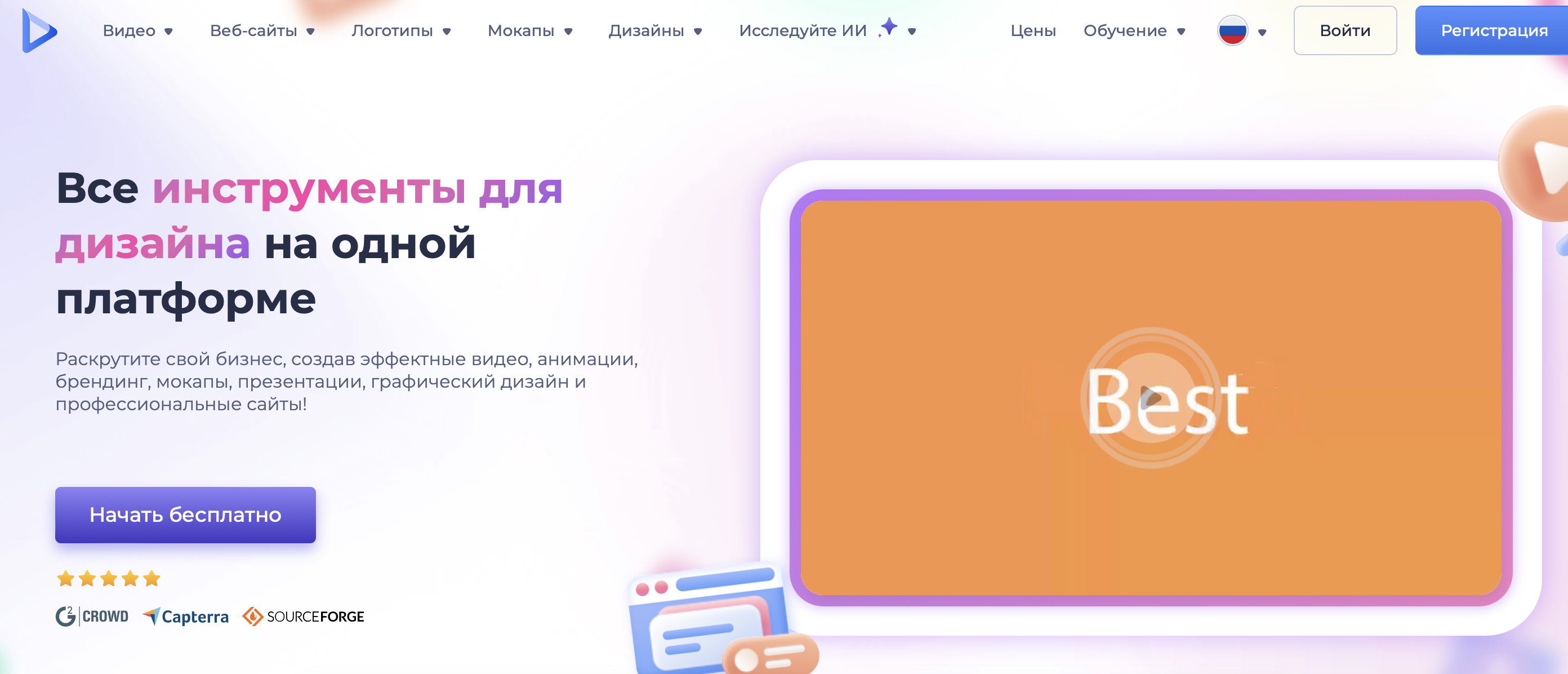 - возможность создавать дизайны для логотипов и других элементов;