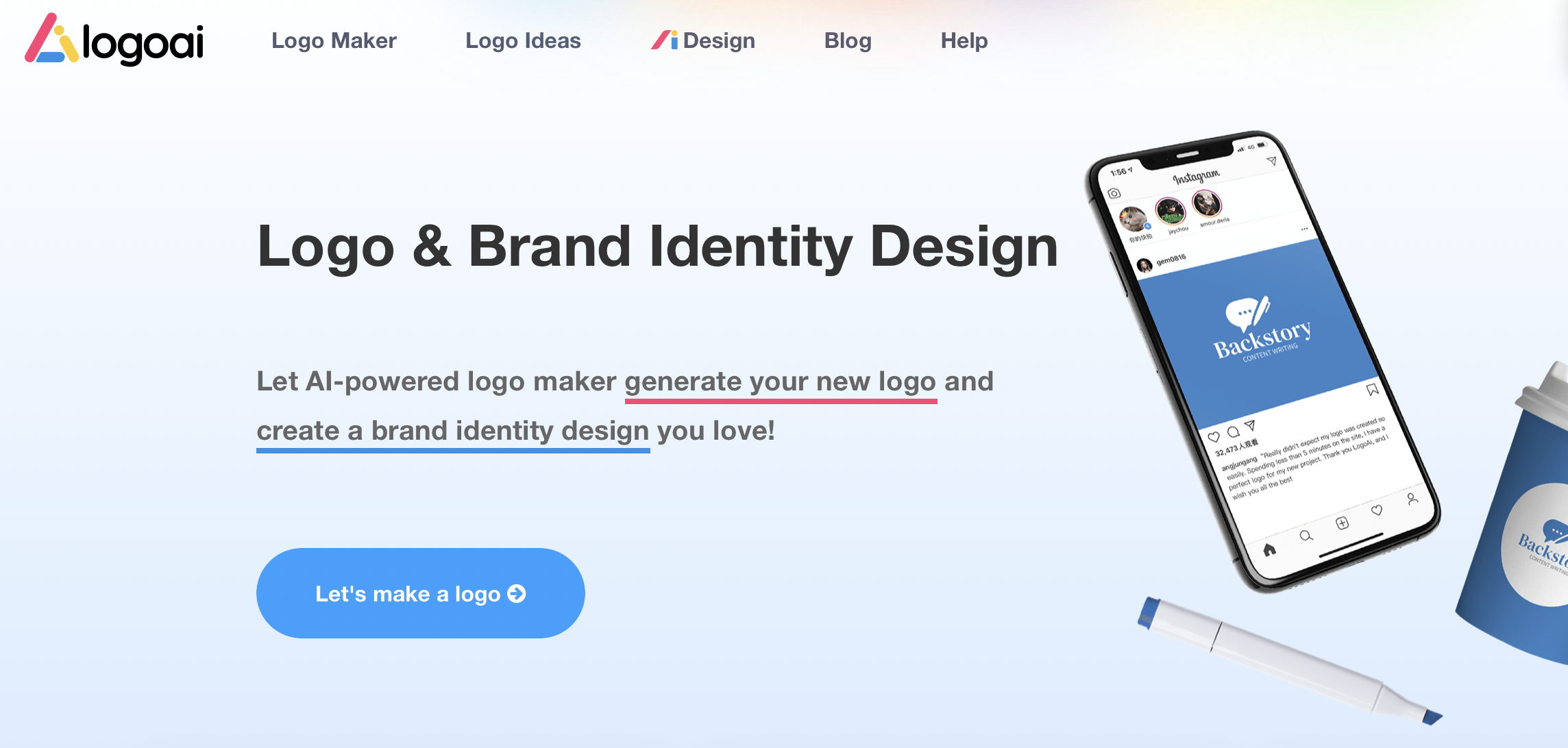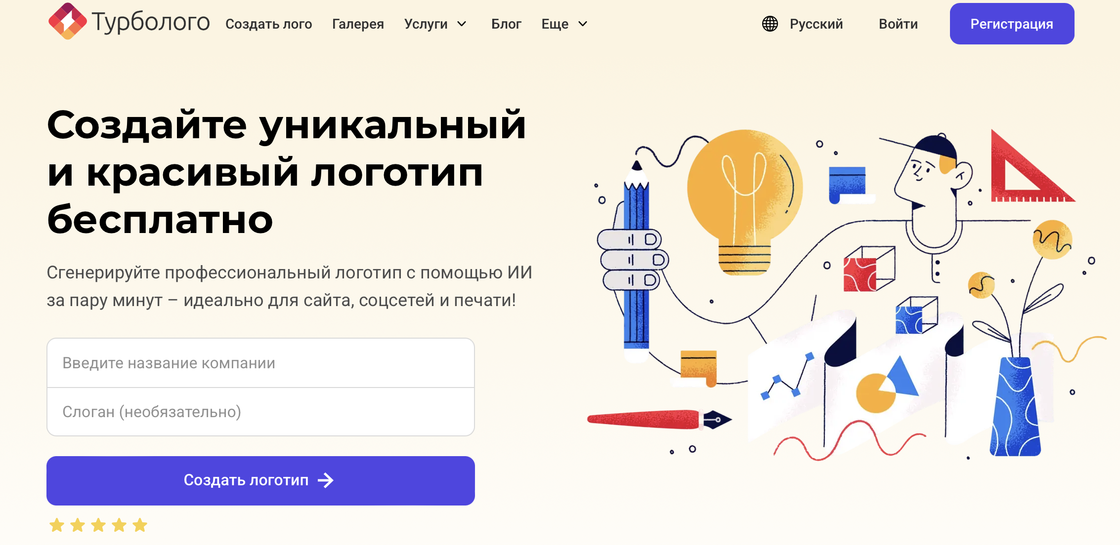 - легко сгенерировать логотип по описанию.