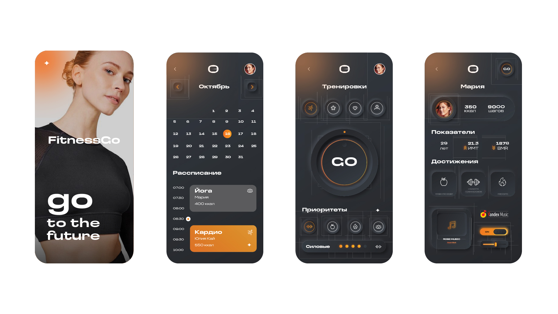 Знакомство давнего клиента Brand Hub, Сейфуллаха, и Фитнес тренера Ольги, привело к созданию нового бренда. Партнеры решили объединить фитнес с правильным питанием и поместить всё это в собственное мобильное приложение Fitness Go. В основу заложили программу похудения за счет правильного питания и физических упражнений, всего 30 программ.