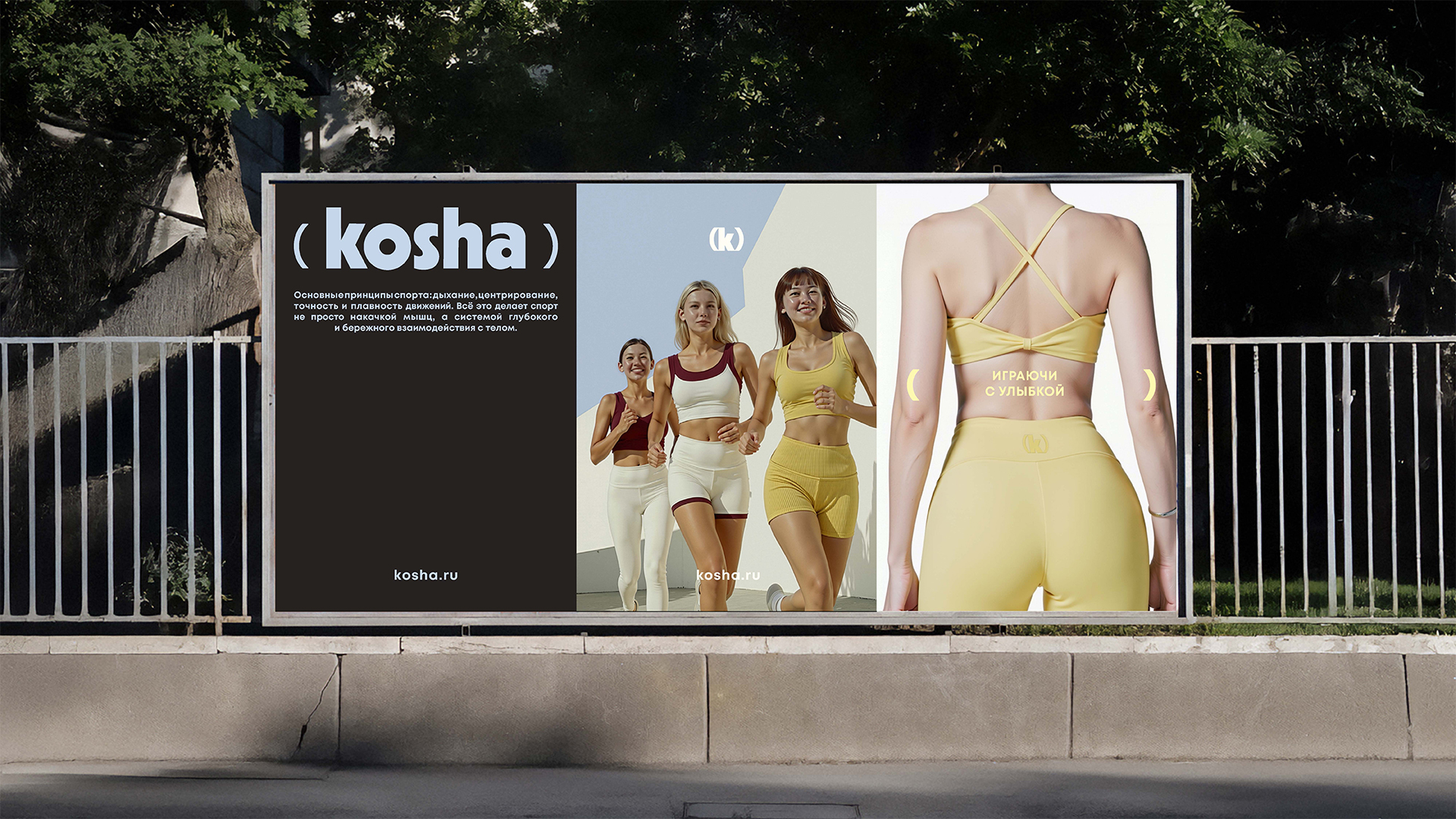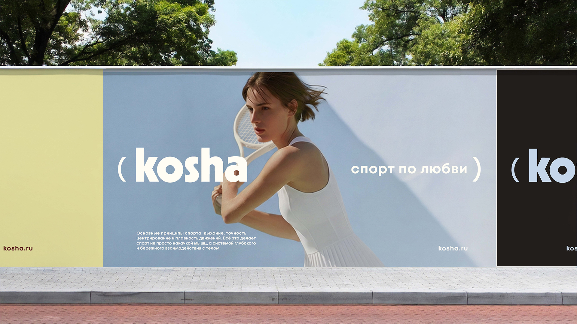 Бренд принял решение менять стратегию. Название KOSHA (санскрит — «оболочка», «вторая кожа») сохраняется, однако компания отказывается от визуальных кодов, связанных с йогой и индийской культурой. Ассортимент давно вышел за эти рамки, теперь он и для фитнеса, и для большого тенниса: комбинезоны, теннисные платья и юбки, леггинсы, топы. Целевая аудитория — женщины 30–45 лет, выбирающие спорт для удовольствия и качества жизни.