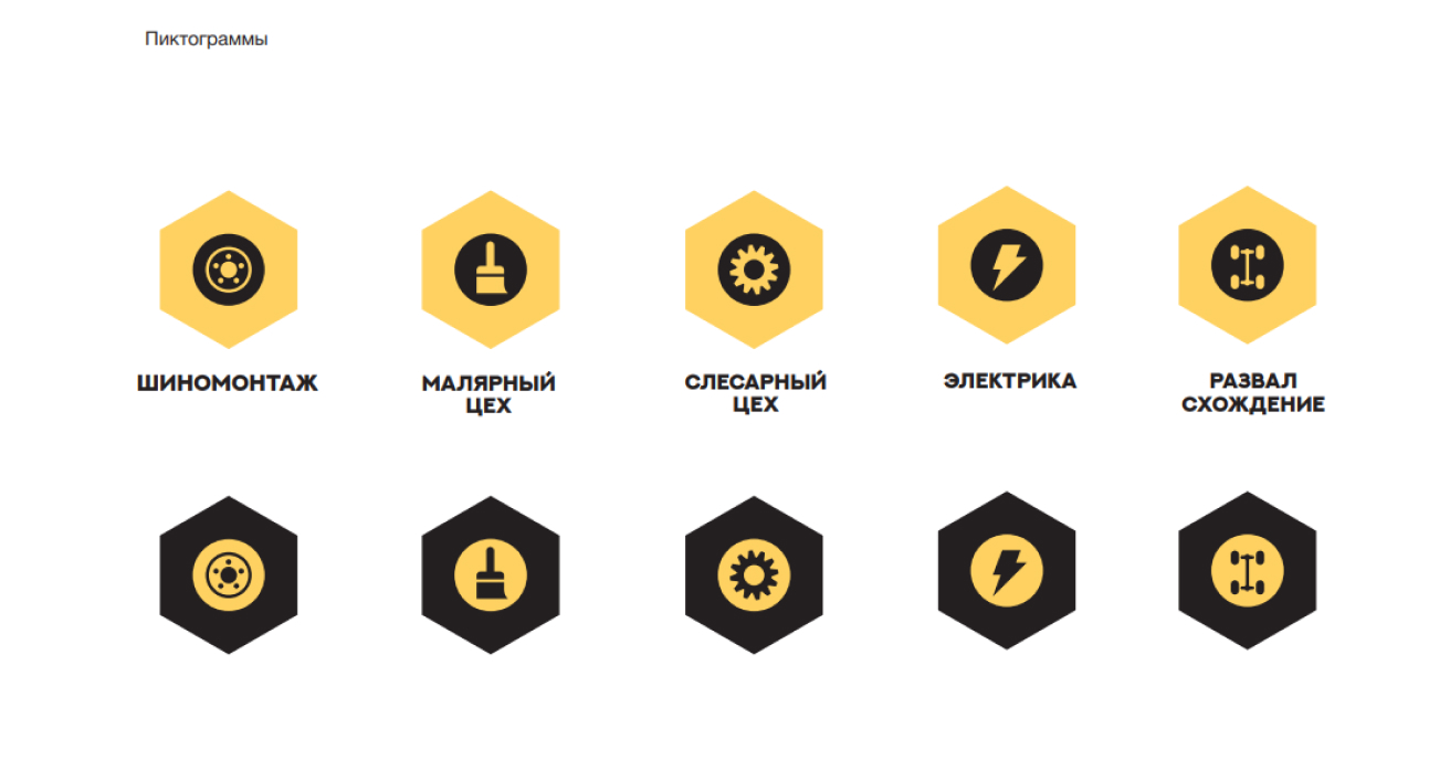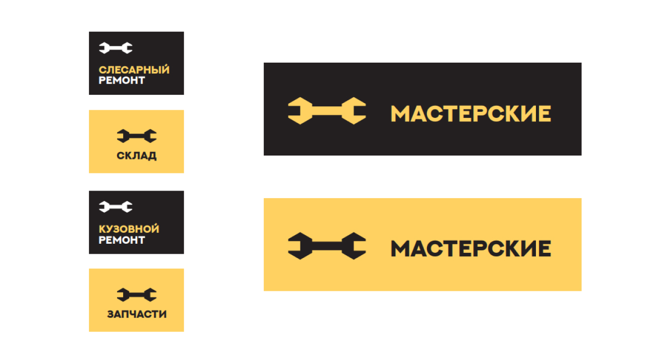 напрямую отражает деятельность компании, так как содержит в основе понятный образ гаечного ключа. Это позволяет легко считывать бренд издалека, что важно для сервисного центра. Шрифтовая часть выполнена крупным гротеском и удачно связывается с графикой знака.