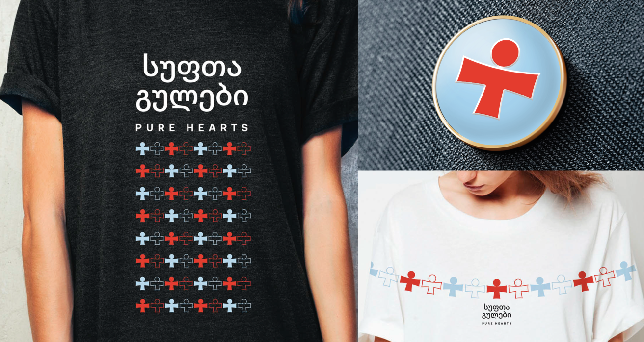 Чистые сердца — грузинский женский благотворительный фонд, содружество женщин во всем мире, работа которых направлена на оказание поддержки и организацию помощи детям и женщинам, страдающим от рака. С помощью сервиса Brand Hub был разработан логотип и фирменный стиль организации, отражающий характер фонда. Основной элемент логотипа заимствован из грузинского флага и преобразован в символ женщины, а складываясь в паттерн, он становится знаком содружества. Основные цвета — спокойные, но в меру контрастные, подчеркивают светлый и позитивный образ организации.