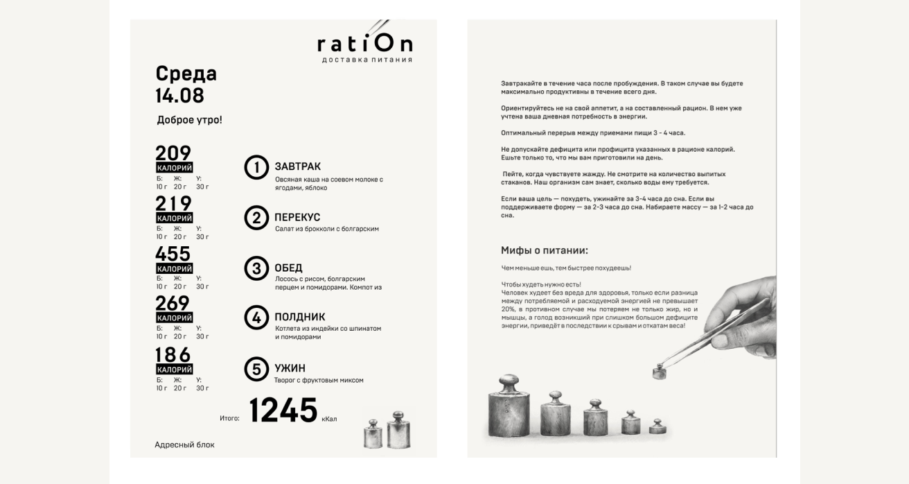 Ration — сервис по доставке еды, где приоритетами являются качество продукции, учет жизненного ритма клиентов и прозрачность процессов.