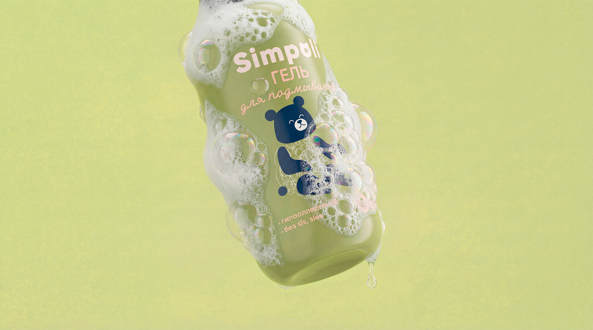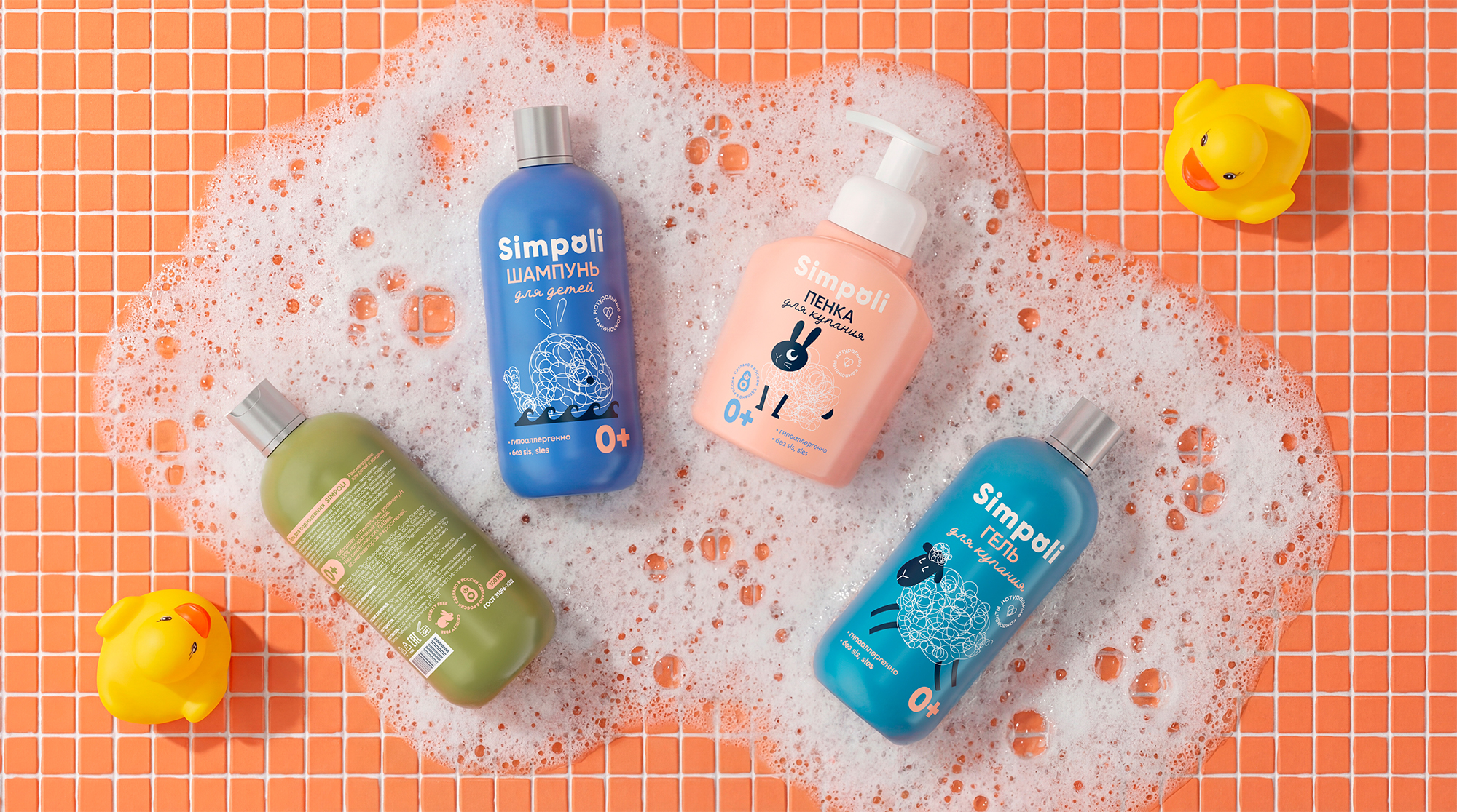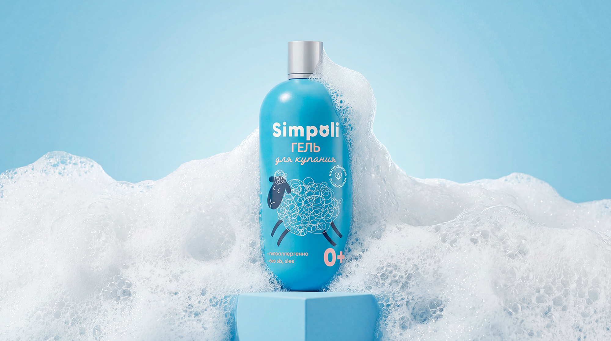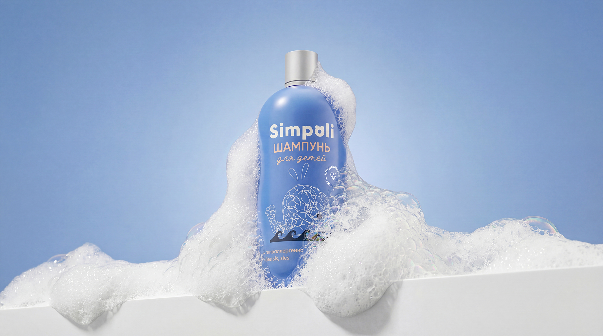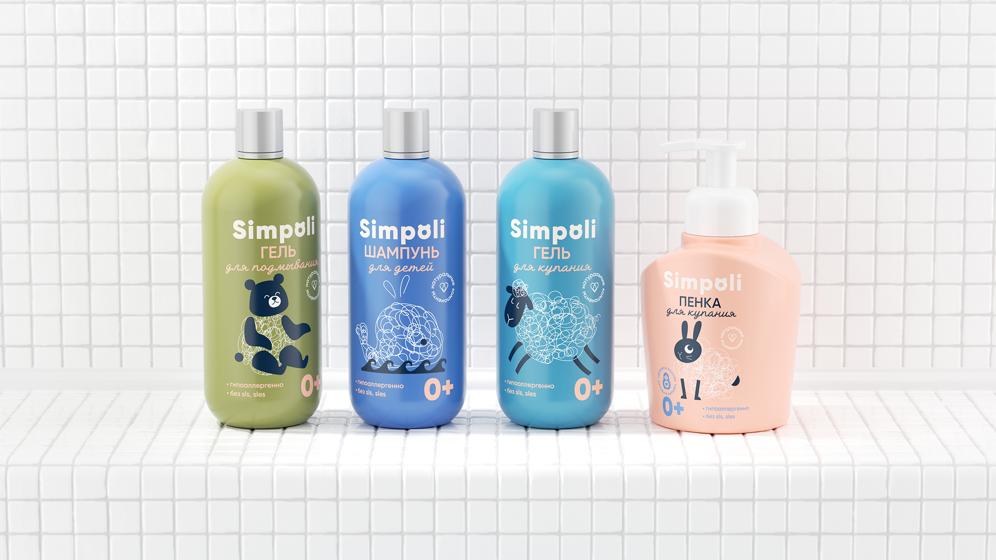 Логотип SIMPOLI, с его лаконичным шрифтом и интегрированным знаком, символизирует ясность и надёжность. Уникальная графика раскрывает душу бренда. Пена для купания превращает мытьё в поле для воображения — с помощью нежных линейных иллюстраций, где из пузырьков рождаются овечки, мишки и улитки. Это напоминание о том, что даже в простом ежедневном ритуале таится безграничная фантазия, которая создаёт самые тёплые воспоминания.