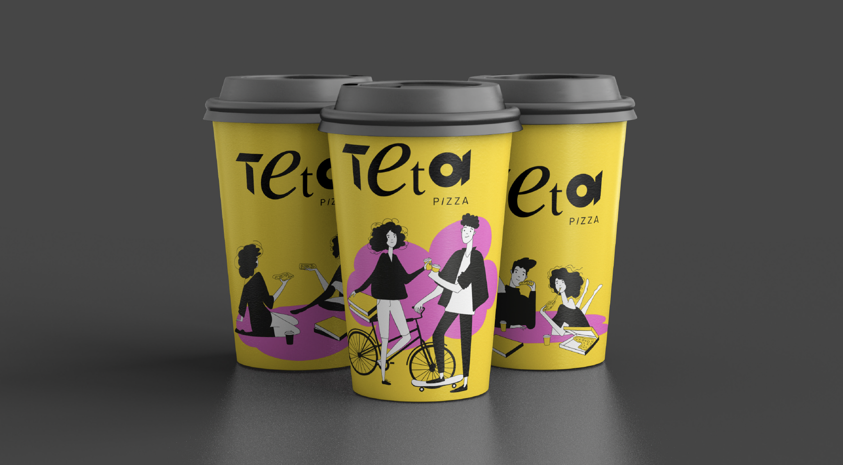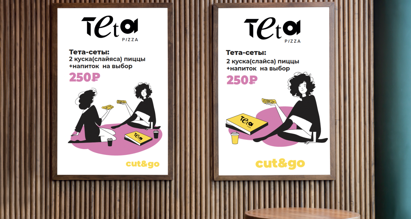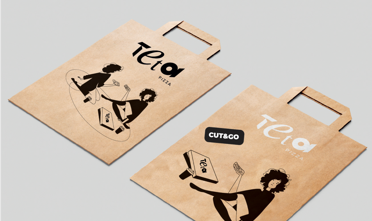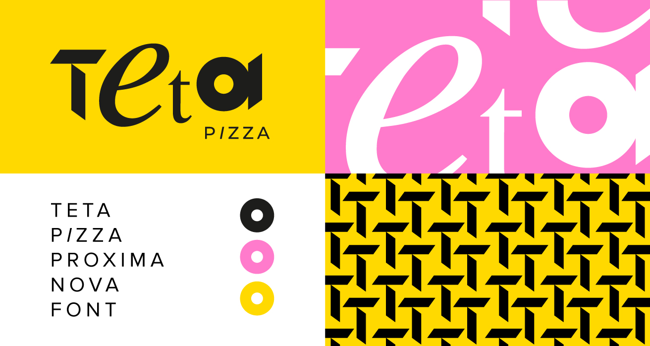 Название отсылает нас к концепции бренда: тета – созвучно с тетрисом, который собирает картинку по кусочкам. Также Тета – 8-я буква греческого алфавита, а римская пицца делится как раз на 8 кусков. Эта концепция использовалась при дальнейшей разработке бренда пиццерии, в том числе при создании фирменного стиля и логотипа.